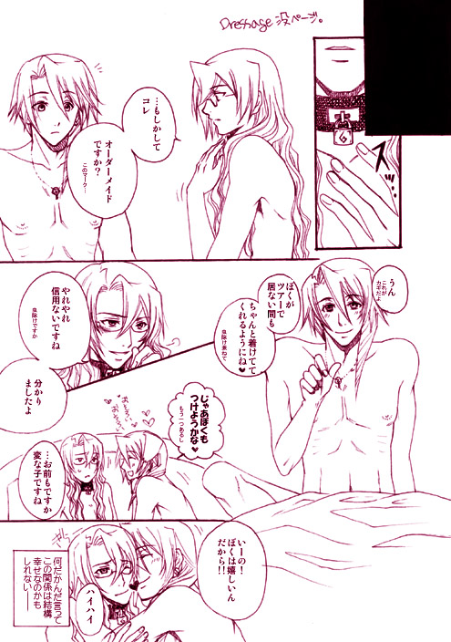 2008年夏に発行したDressageの没ページ(ラスト)漫画です。 Dressageのラスト没ページです。 お持ちの方は見比べて頂けると分かると思うんですが、 直前までの雰囲気とあまりにもかけはなれ過ぎていた為に急遽変えました。 ちょっとこれはほのぼの過ぎた。