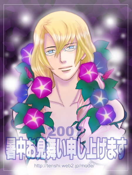 こうも色っぽい先生を飾っていると朝顔も妖艶な花のように思えてきます…。